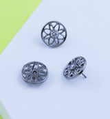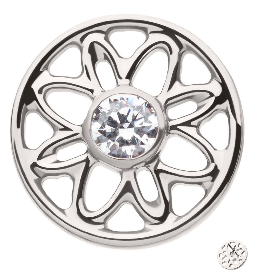 This titanium threadless top features a circular mandala flower design complete with a clear cz gem in the middle. This piece is made from ASTM F-136 titanium and fits most threadless posts. Pin size is 25G. The top design measures 8.5mm x 8.5mm. Sold individually (1pc - top only).