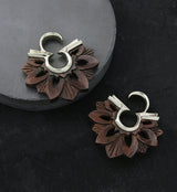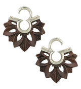 Wooden ear weights that are handmade in a mandala design. Lightweight at about 12 grams each. Must be 2G (6mm) or bigger to wear. Height is approximately 55mm and width is about 50mm. Top is made from white brass. Brass is not meant for long term wear. It may oxidize under extreme moisture conditions. For healed piercings. Sold in pairs (2pcs).