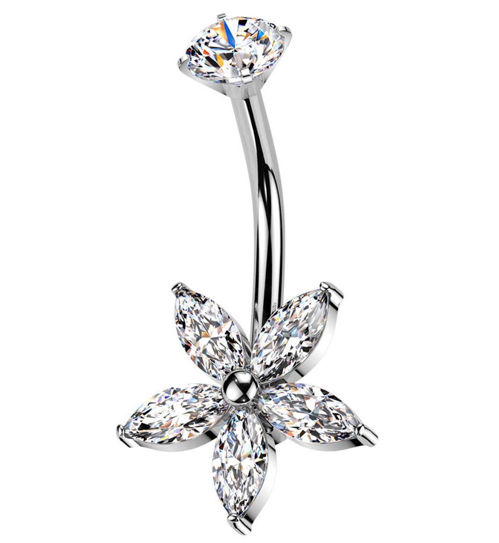 Marquise Flower Clear CZ Internally Threaded Stainless Steel Belly Button Ring