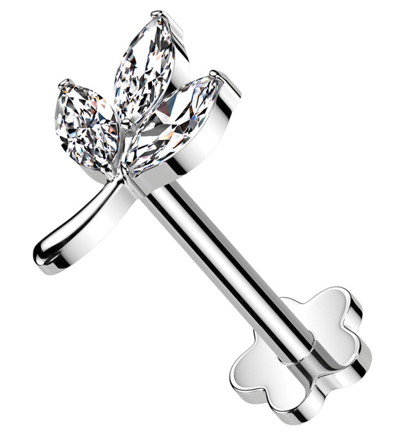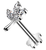 Marquise Leaf Clear CZ Flower Back Titanium Threadless Labret