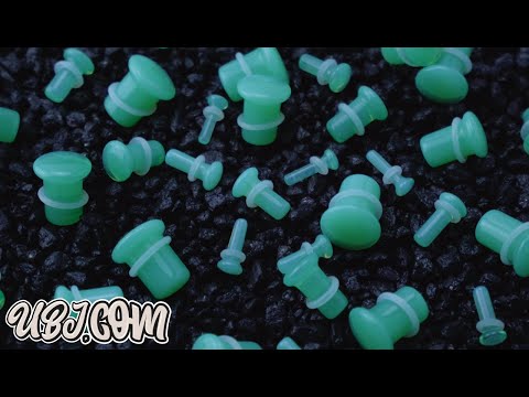 Mint green single flare opalite glass plugs that have a slight transparency when in the light. Come with clear silicone "O" rings. Entire length is 5/8" (16mm), wearable area is 6mm-10mm. Sold in pairs (2 pcs).