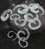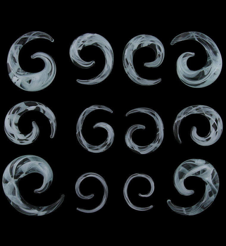 Experience the beauty of handmade Pyrex glass with our Mint Swirl Glass Spirals. Perfect for those seeking a unique piece, each spiral is individual in color and pattern due to the handmade process. We will do our best to find you a matching pair. Available in sizes ranging from 8G (3mm) to 1/2" (12mm). Sold in pairs (2pcs).