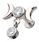 Moon Phase Dangle Clear CZ Stainless Steel Internally Threaded Labret