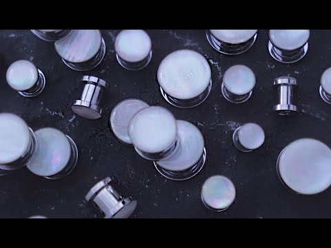Screw back tunnels plugs with mother of pearl shell in the front. Made from 316L stainless steel. Available sizes: 2G (6mm), 0G (8mm), 00G (10mm), 7/16" (11mm), 1/2" (12mm), 9/16" (14mm), 5/8" (16mm). Full Length: 13mm X Wearable area: 8mm. Sold in pairs (2pcs).