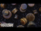 Smooth Nellite stone plugs with a polished feel and handcrafted design. Each plug will be unique in color and pattern - we will do our best to provide a matching set. Double flare with flat sides. 2mm flare. Length is 11mm - 12mm. Sizes can vary by +/- 1mm. Sold in pairs (2 pcs). For healed lobes.