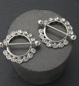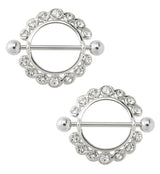Nipple Ring CZ Diamond Gem Barbell Shield