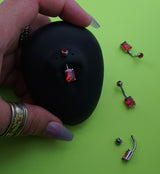 Oblong Prong Red CZ Titanium Belly Button Ring