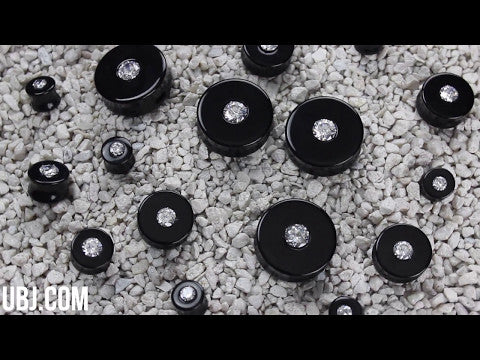 These beauties are crafted from obsidian and feature cubic zirconia gem inlays. These plugs come in various sizes (1/2" - 1 & 1/4") and are sold in pairs (2 pieces). With a 12mm wearable area and a 2mm flare, these plugs will add a touch of glamour to any look.