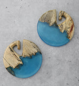 Ocean Blue Resin Disk Tamarind Wood Ear Weights