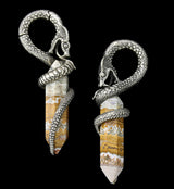 Ocean Jasper Stone Cobra White Brass Hinged Ear Weights