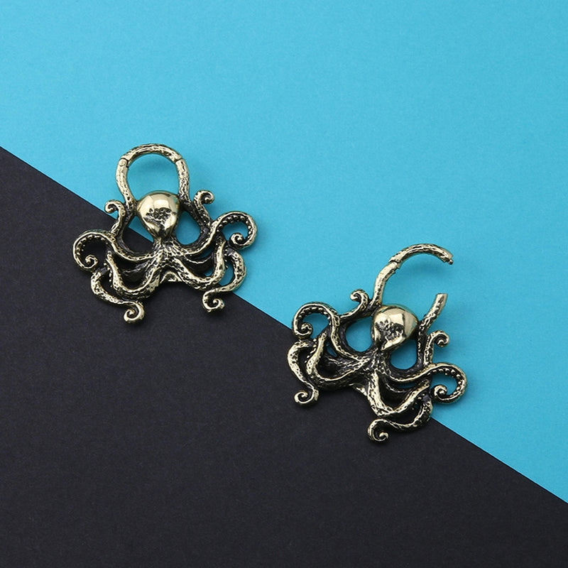 Sold in pairs (2pc) Size: 0G and bigger to wear Size: 38mm x 35mm 11 grams each Clicker opens and closes Casted in brass Brass is not meant for long term wear May oxidize under extreme moisture conditions