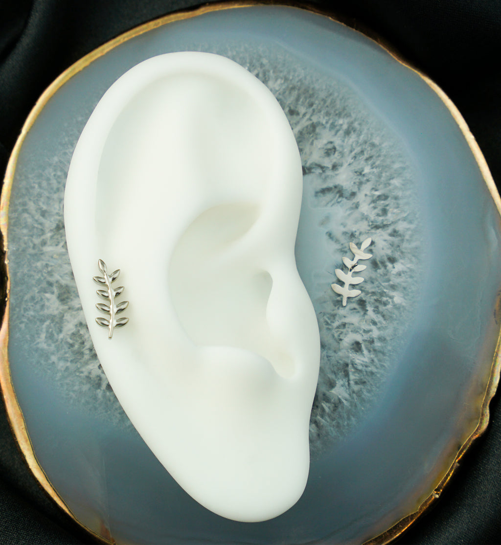 Made from strong ASTM F-136 titanium, this dainty titanium threadless top has an olive leaf design. The design size is approximately 12mm x 5mm. This top has a threadless design and fits most threadless posts for a secure fit. Sold individually (1pc).