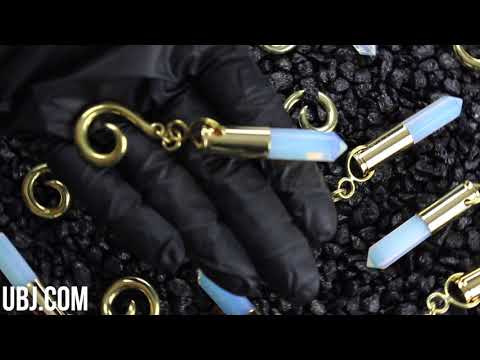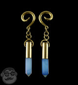 Sold in pairs (2pc) Opalite glass NOTICE: color will have some variance for each piece Appx 16 grams each piece 4G or bigger to wear Appx Width: 11mm Appx Height: 95mm Made from brass Brass is not meant for long term wear. May oxidize under extreme moisture conditions Free domestic shipping