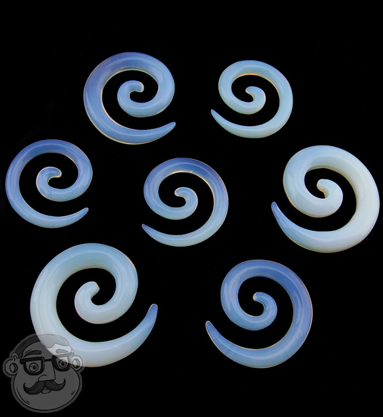 These Opalite Glass Spirals come in pairs, each handmade with a unique spiral design and color pattern due to the nature of the opalite glass. Available in sizes 2G (6mm) - 00G (10mm), they’re perfect for healed lobes. Handmade with care, these spirals aren’t meant for ear stretching. Handle with care. We’ll do our best to find you a matching pair.