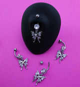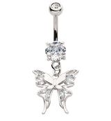 Opulent Butterfly Clear CZ Dangle Stainless Steel Belly Button Ring