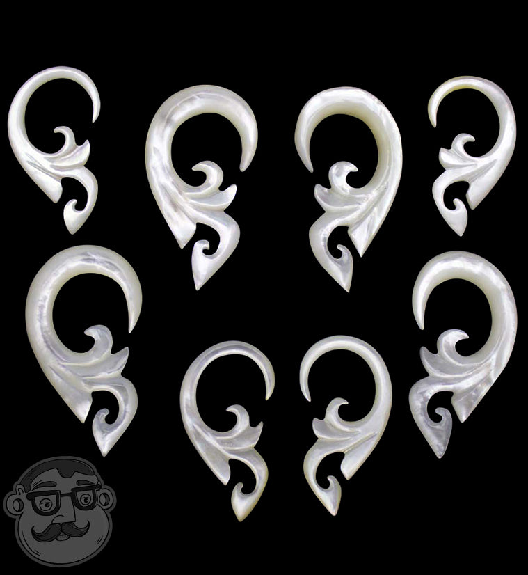 Add a splash of natural beauty with these Ornamental Mother of Pearl Hangers! Sold in pairs, each handcrafted piece showcases unique colors and patterns from sustainable mother of pearl shell. Choose your perfect size from 12G (2mm) to 2G (6mm). These earrings are designed for healed lobes—not for stretching—and may vary slightly in size due to their handmade charm. Just keep them away from direct sunlight and extreme moisture to keep their glow shining bright! We’ll do our best to pair you with a complementing set.