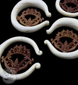 Sold in pairs, each handcrafted piece features a unique carved sun flare design made from crocodile and saba wood. Measuring about 70mm by 70mm, their distinct colors and patterns make every pair one-of-a-kind. Perfect for healed lobes, these lightweight hangers bring a fun, earthy vibe to your look. Just remember to keep them out of direct sunlight and extreme moisture conditions. Sizes range from 0G (8mm) to 5/8" (16mm).