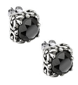 Ornate Black Square CZ Stainless Steel Stud Earrings