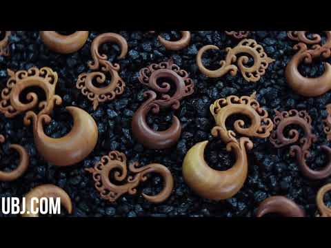 Sold in pairs, these handcrafted Ornate Saba Wooden Spirals bring natural beauty to your healed lobes. Made from smooth, polished saba wood, each pair features unique patterns and colors, we will do our best to find you a complementing pair. Available in sizes from 6G (4mm) up to 5/8" (16mm), they fit comfortably but are not for stretching. Add a fun, earthy vibe to your look with these stunning wooden spirals!