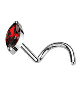 Titanium nose screw rings with a single marquise, red cz gem on top. Top size is about 5mm. Choose your gauge size: 20G, 18G. Length is 1/4" (6mm). Made out of durable ASTM F-136 titanium. Sold individually (1 pc).