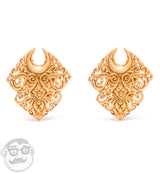 Sold in pairs (2pc) 14.5g each 13/16" (20mm) or bigger to wear Height: 42mm Width: 39mm Brass is not meant for long term wear. May oxidize under extreme moisture conditions
