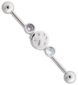 Paw Print Clear CZ Stainless Steel Industrial Barbell
