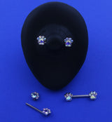Paw Print Rainbow Aurora CZ Stainless Steel Nipple Barbell