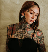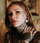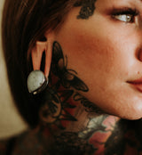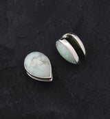 White brass ear weights in a teardrop shape and filled with natural chrysoprase stone in the front. Must be 13/16" (20mm) or bigger to wear. Height is 28mm and width is 20mm. Weight is approximately 28 grams each. Brass is not meant for long term wear and it may oxidize under extreme moisture conditions. Sold in pairs (2pcs). For healed piercings.