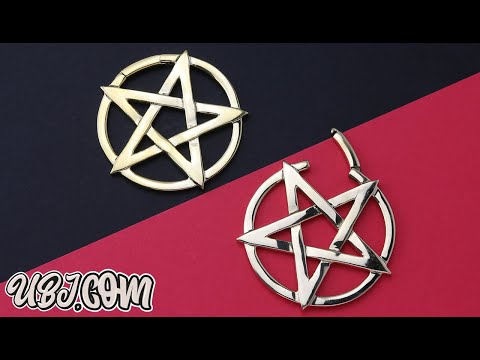 Pentagram ear weights made from yellow brass. Size is 4G and they weight about 45 grams each. Height is 50mm and width is 47mm. These are sure to be a great addition to your jewelry collection! Sold in pairs (2 pcs). For healed lobes.