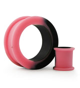 Pink And Black Double Flare Silicone Tunnel Plugs