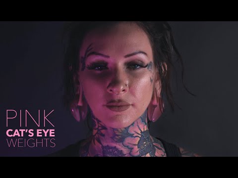 Cat's eye glass keyhole ear weights in pink. Made from glass and available in two sizes! Small measures 40mm x 25mm and weighs approximately 22 grams each. The Large measures about 50mm x 35mm and weighs approximately 36 grams each. Sold in pairs (2 pcs).