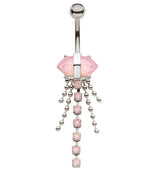 Pink Crystal Bead Chain Stainless Steel Belly Button Ring