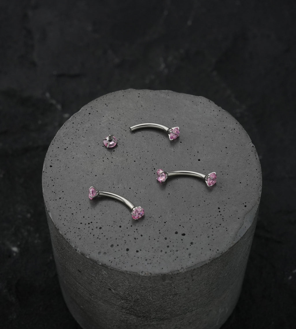 Pink CZ Prong Set Stainless Steel Curved Barbell
