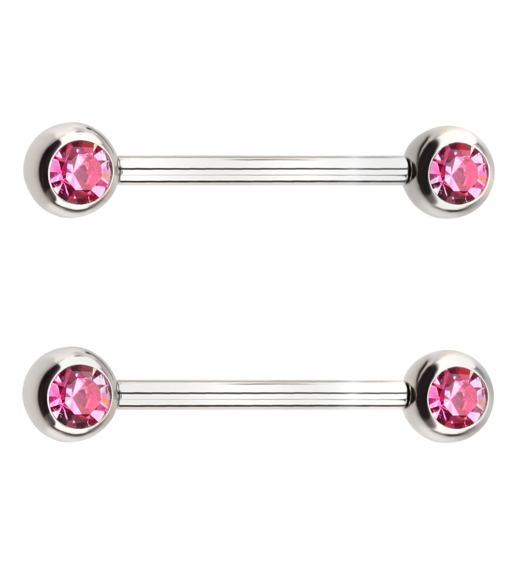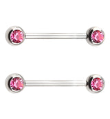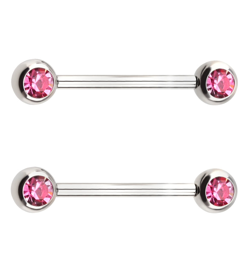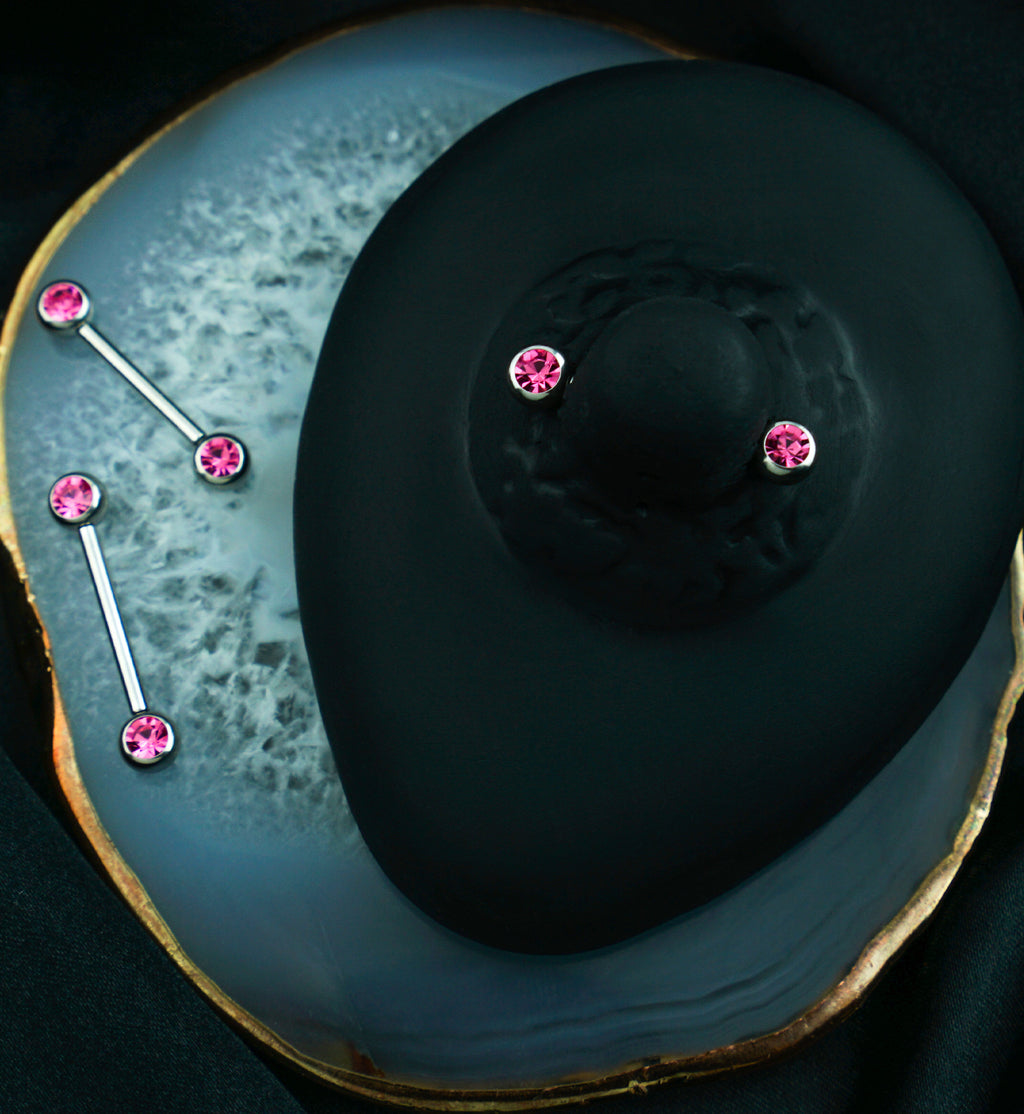 Pink CZ Stainless Steel Threadless Nipple Barbells