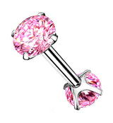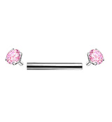 Pink Double Round CZ Prong Set Stainless Steel Barbell