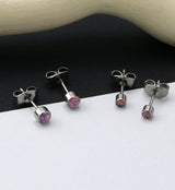 Shining bezel set titanium earrings with pink synthetic opals. Made from ASTM f-136 titanium. Size is 20G. Sold in pairs (2 pieces). Choose from 3mm or 4mm opal size. Fun pair of earrings to add to your jewelry collection!