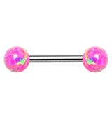 Show your true colors with our pink opalite barbell! The 14g straight barbell features 316L stainless steel construction with secure internal threading. Choose your length: 9/16" (14mm), 5/8" (16mm). Opalite size depends on barbell length. Synthetic pink opalite provides a dazzling iridescent effect for your brightest days. Ideal for healed piercings only. Sold individually, order two to complete your pair!