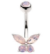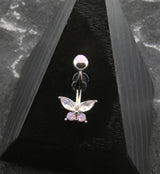 Pink Opalite Butterfly Stainless Steel Belly Button Ring