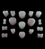 Sold in pairs Double flares Heart shaped 2G - 5/8" Not for freshly stretched ears Quartz stone Polished & smooth Full length: 13mm 12mm wearable area NOTICE: Each and every plug is slightly different due to the nature of the stone. We do our best to give you a matching pair