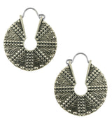 Be different with these cool handcrafted Pivot White Brass Disk Earrings/Hangers. Made from casted white brass with a ASTM F-136 titanium wire, each piece weighs approximately 14 grams and measures 35mm x 42mm, but sizes may vary as each piece is different. Requiring 18G (1mm) piercing for wear, the brass material is not meant for long term wear and may oxidize under extreme moisture conditions. Can be worn as regular earrings, plug hoops or ear weights/hangers.