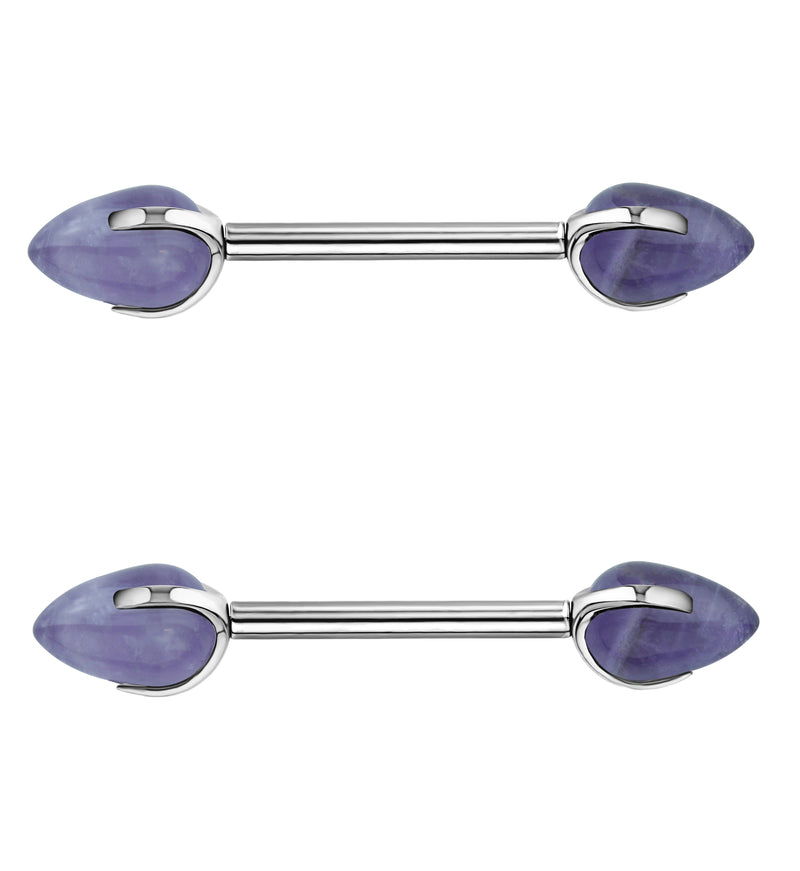 Point Amethyst Stone Threadless Titanium Nipple Barbell