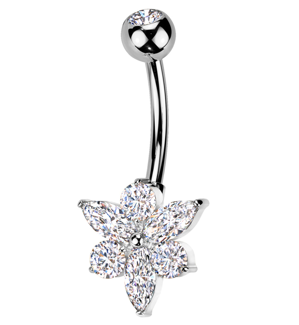Pointed Flower Clear CZ Titanium Belly Button Ring
