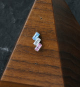 Triple cz threadless top piece that has a slanted design. Made from ASTM F-136 titanium and transgender flag colors, baguette cz gems. Measures about 10mm x 4mm. 25G pin. Fits most threadless posts. Sold individually (top piece only).
