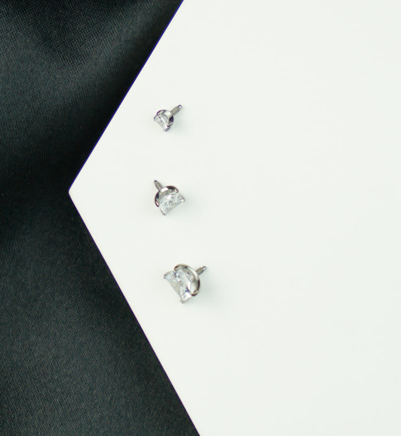 Top piece that has a diamond-shaped, prong-set, clear cubic zirconia gem design. Made from ASTM F-136 titanium and is internally threaded. Size is 16G and it has M0.9 threading. Choose your gem size from 2mm, 3mm and 4mm. Sold individually (top piece only).