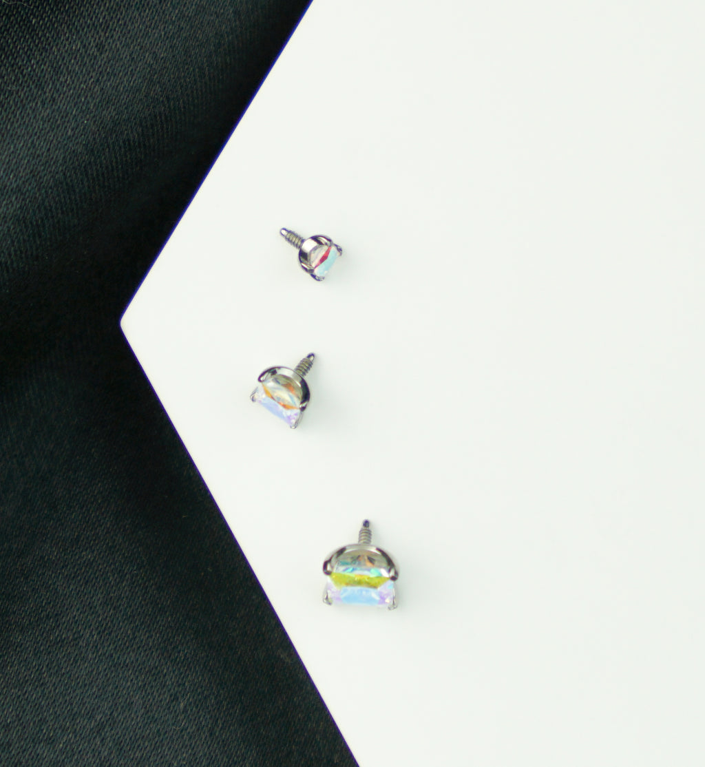 Bright top piece that has a square-shaped, prong-set, rainbow aurora cz gem design. Made from strong ASTM F-136 titanium and is internally threaded. Size is 16G and it has M0.9 threading. Choose your gem size from 2mm, 3mm and 4mm. Sold individually (top piece only).