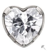 Prong Set Clear Heart CZ Titanium Threadless Top