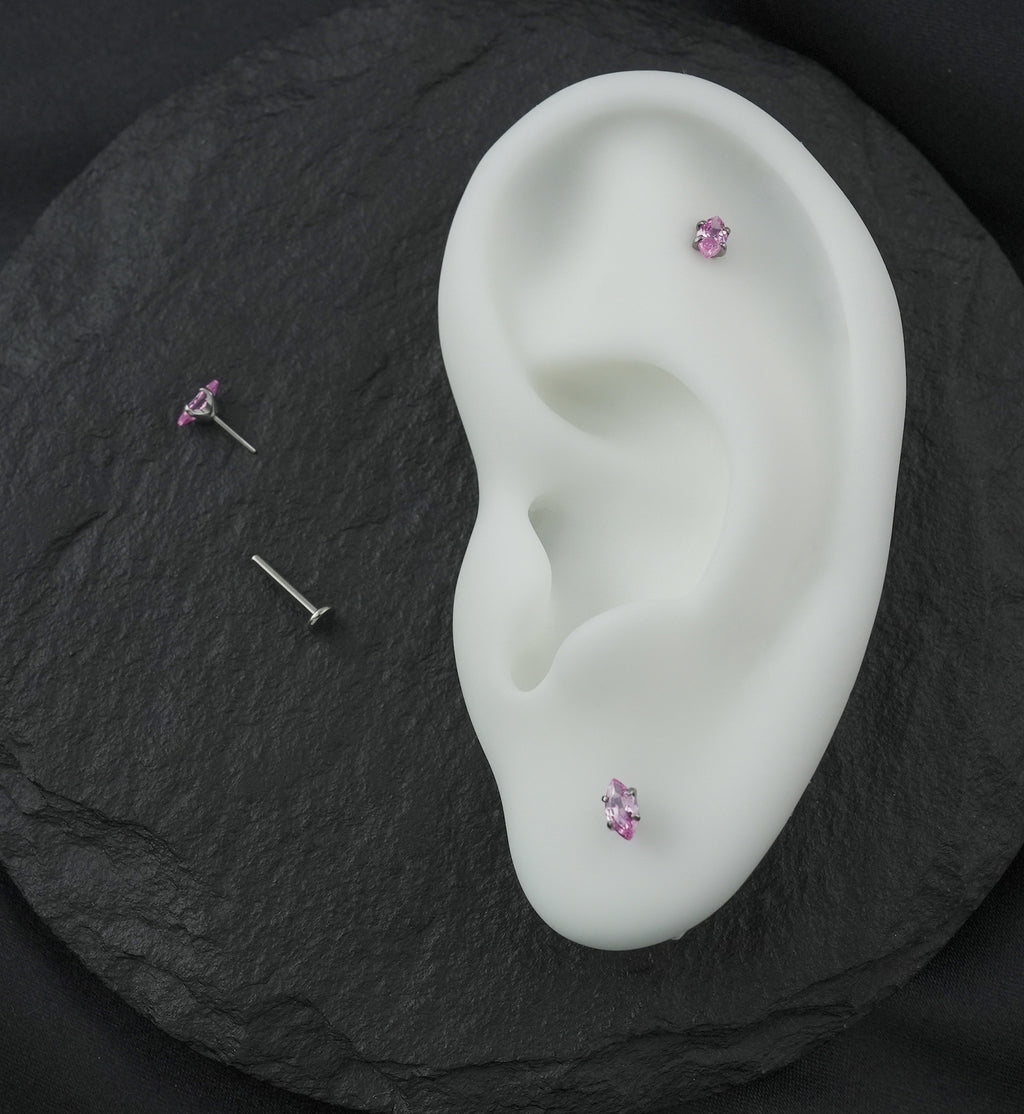 Prong Marquise Pink CZ Threadless Titanium Flat Disk Labret