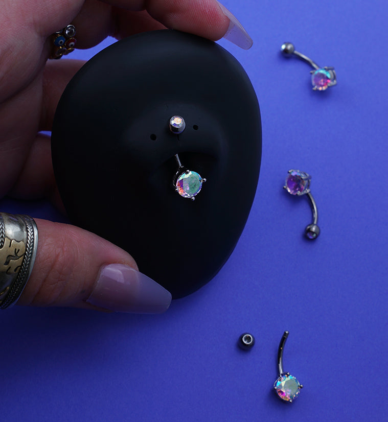 Prong Rainbow Aurora CZ Titanium Belly Button Ring