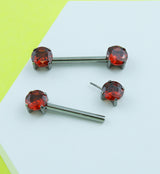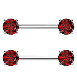 Prong Red CZ Threadless Titanium Nipple Barbells
