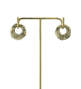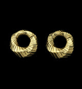 Shiny golden ear weights made from brass with a hinged open and closure design. Size is 4G or bigger to wear. These measure at 25mm x 25mm and are about 15 grams each. Sold in pairs (2pcs). For healed piercings/lobes.